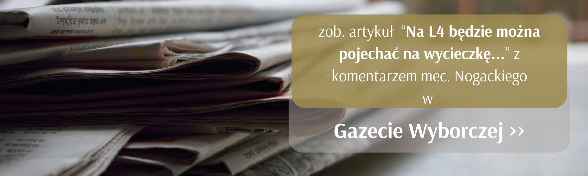 Zobacz również artykuł: „Na L4 będzie można pojechać na wycieczkę. Od kwietnia wchodzą w życie rewolucyjne zmiany w zwolnieniach lekarskich” w Gazecie wyborczej >>